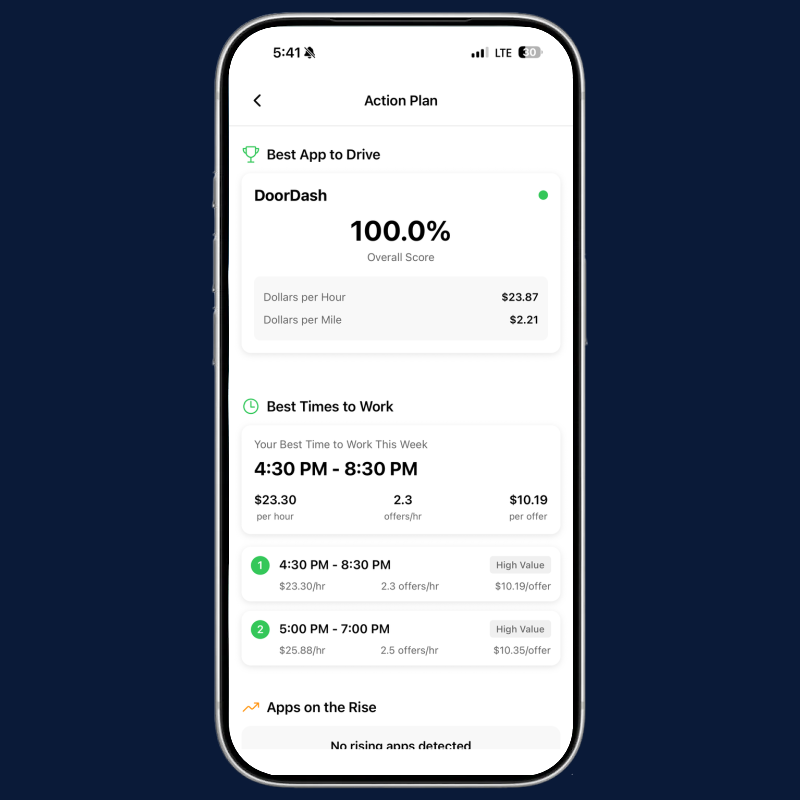 Discover the best times and platforms to work for your specific market and work preferences (no generic summaries!). ShiftMate analyzes your data to recommend the most profitable schedules.