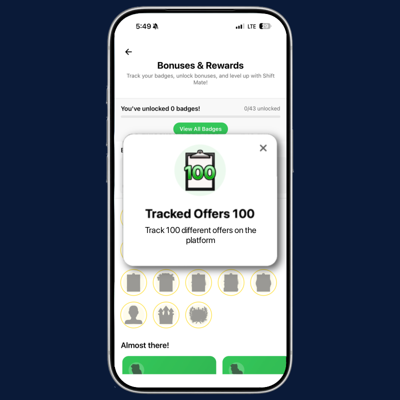 Grow your presence and achievements on ShiftMate to unlock badges and cash bonuses.